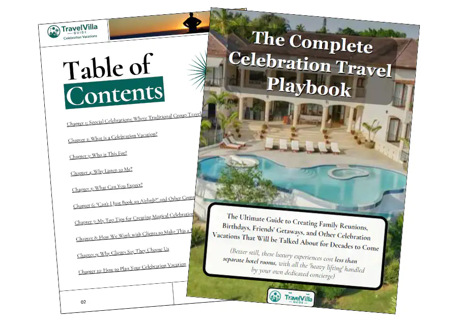 Get a free copy of The Celebration Travel Playbook—a practical guide to planning meaningful group trips with confidence. Inside, you’ll learn how families and friends plan celebration vacations that actually work: choosing the right destinations, understanding why villas often work better than hotels, and avoiding the common missteps that can derail group travel.