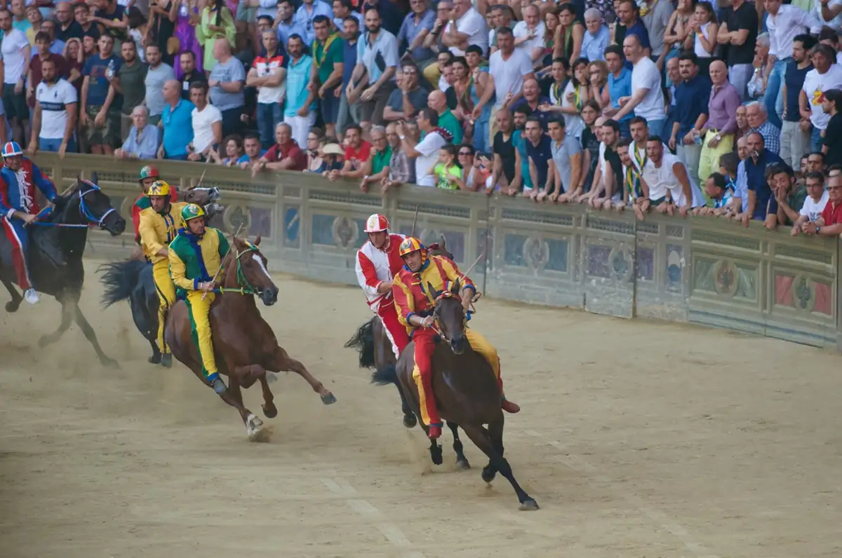 Not at all—it’s an entire cultural event. Leading up to the race, the city bursts with medieval parades, flag-throwing performances, and neighborhood feasts. The Palio is as much about tradition, rivalry, and community pride as it is about the thrilling two-minute race.