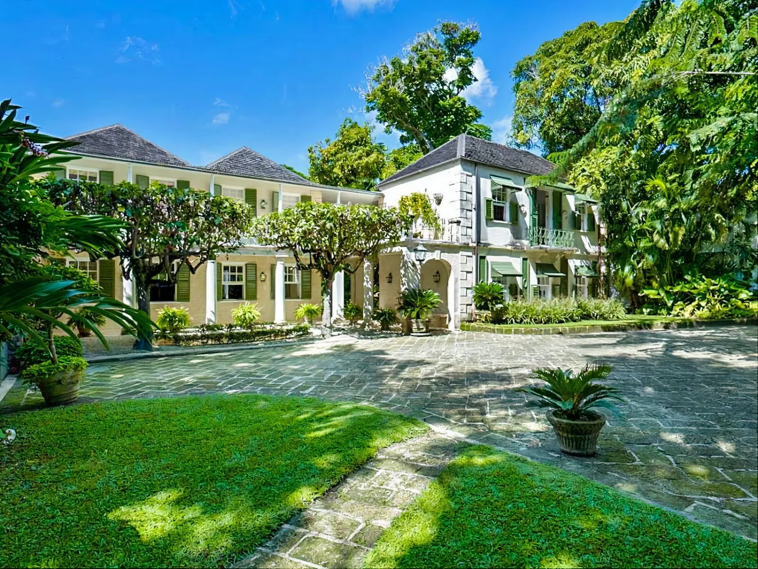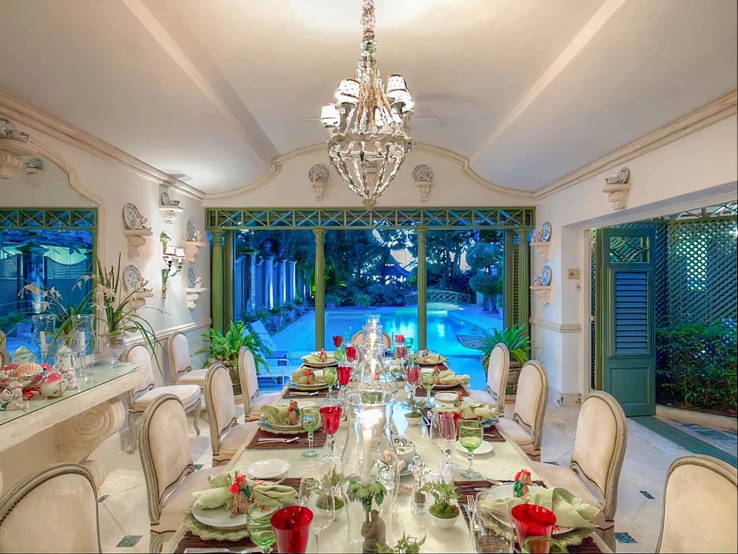 Inside, traditional colonial details pair with warm wooden furnishings, while the games room with a pool table and the private outdoor pool tucked behind the garden keep young and old entertained.